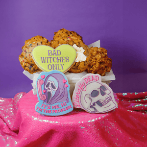 Get spooky with this playful cookie set designed for Halloween lovers of all ages. Featuring festive designs like “Bad Witches Only,” “Literally Dead,” and a cheeky scream-inspired cookie, this pack is equal parts creepy and sweet.